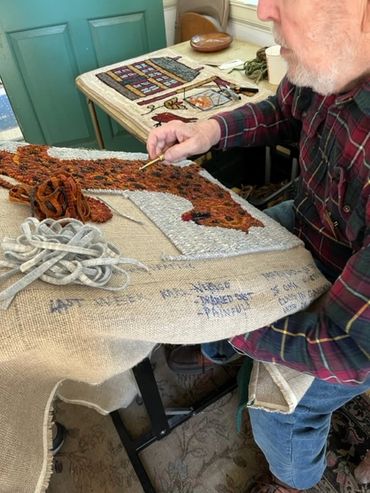 Rug hookers Aggie Harris, Karl Gimber and Lucy Walsh welcomed many interested visitors curious to hear about hooking history and to see examples of our work. Bucks County in the fall is the perfect time and setting to showcase the art of rug hooking.