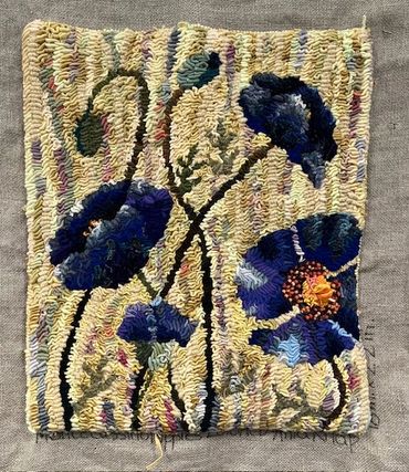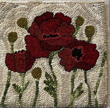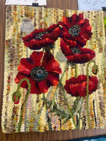 In January 2024, certified McGown teacher, Ania Knap gave a workshop to 20 Guild members on her pattern, "Poppies”, using hand-torn wool strips. The class was at a local